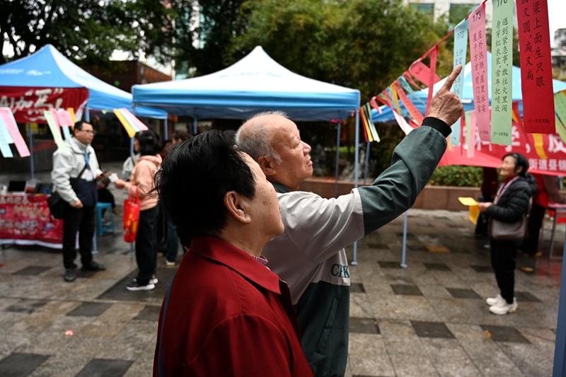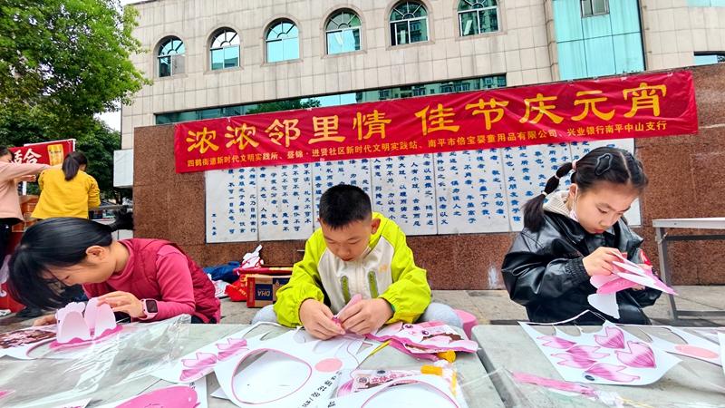 元宵花灯映笑颜,邻里欢聚庆团圆。为弘扬中华优秀传统文化,丰富社区居民精神文化生活,营造欢乐祥和、文明和谐的节日氛围,3月3日上午,四鹤街道新时代文明实践所联合昼锦社区·进贤社区新时代文明实践站、南平市移动公司延平分公司及兴业银行南平中山支行,在四贤公园举办“浓浓邻里情 佳节庆元宵”主题游园活动。 猜灯谜 活动现场张灯结彩、人头攒动,处处洋溢着喜庆热闹的节日气息。猜灯谜区域人气高涨,一条条涵盖字谜、成语、生活常识等内容的趣味灯谜悬挂在红灯笼下,居民们驻足品读、互相探讨,猜对谜底的居民依次领取精美礼品,脸上洋溢着喜悦的笑容。“社区举办的猜灯谜活动特别有意义,既能让孩子感受传统节日文化,又能增进亲子互动,还能和邻居们交流,氛围特别好。”带着孩子参与活动的居民王女士说道。 巧手做花灯区域暖意融融。志愿者们精心准备手工材料,耐心讲解制作步骤、手把手指导居民制作。老人、孩子齐上阵,粘灯架、贴装饰、系流苏,一盏盏精致漂亮的灯笼陆续成型。大家手持亲手制作的花灯合影留念,欢声笑语不断。“自己动手做灯笼很有成就感,社区把活动办在了我们心坎上。”居民张大爷高兴地说。志愿者小陈也表示:“能和居民们一起体验做花灯、闹元宵,看到大家开心的笑脸,我也觉得特别温暖。今后我会继续积极参与社区志愿服务,为建设和谐社区贡献力量。”